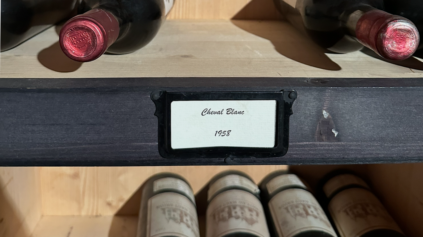 Dans une cave éclairée par une lumière douce, des bouteilles de vin anciennes reposent sur une étagère en bois. Des vins qu’on ne garde pas par snobisme, mais par attachement, en attendant le moment — ou les personnes — avec qui ils prendront tout leur sens.